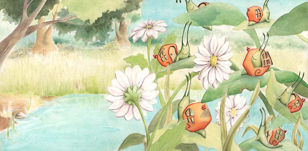 Había una vez una gran familia de caracoles que vivía a la orilla de un río.