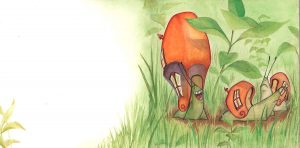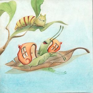 De este modo, el caracol de la casa grande y hermosa pudo subir a la hoja sin su querida casa, sin nada, desnudo y con frío.