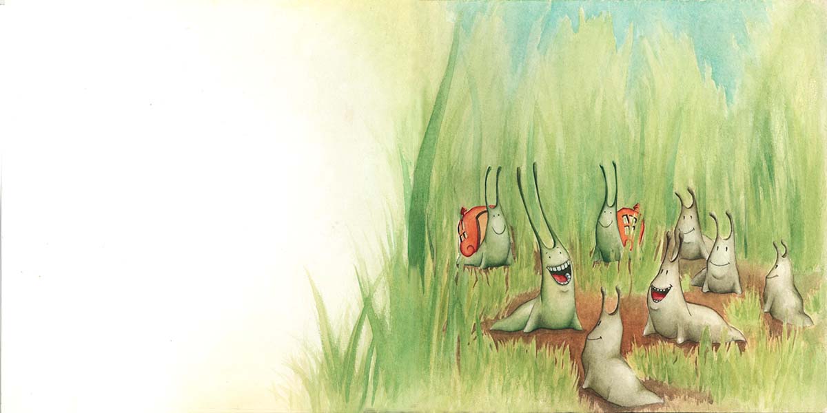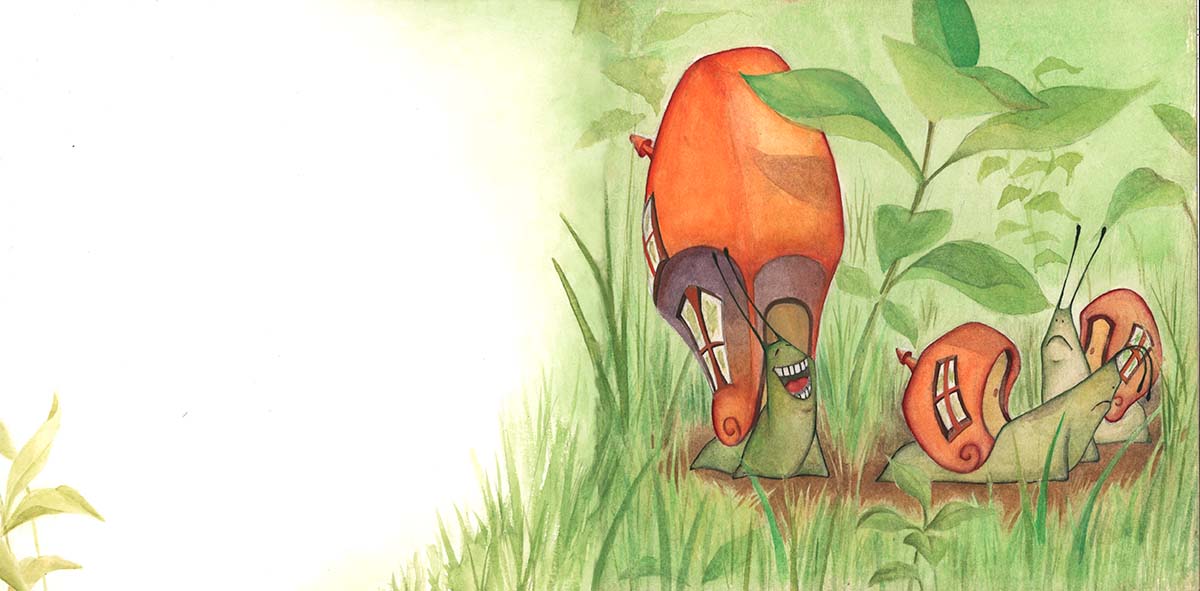 -Ja, ja, ja -reía el caracol cuando otro animal pasaba a su lado. Y estos animales se quedaban tristes, pues a nadie le gusta que se rían de él.