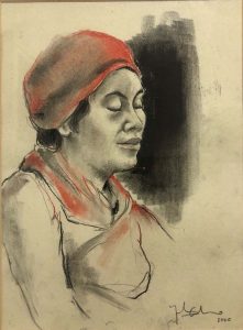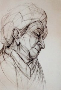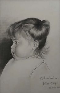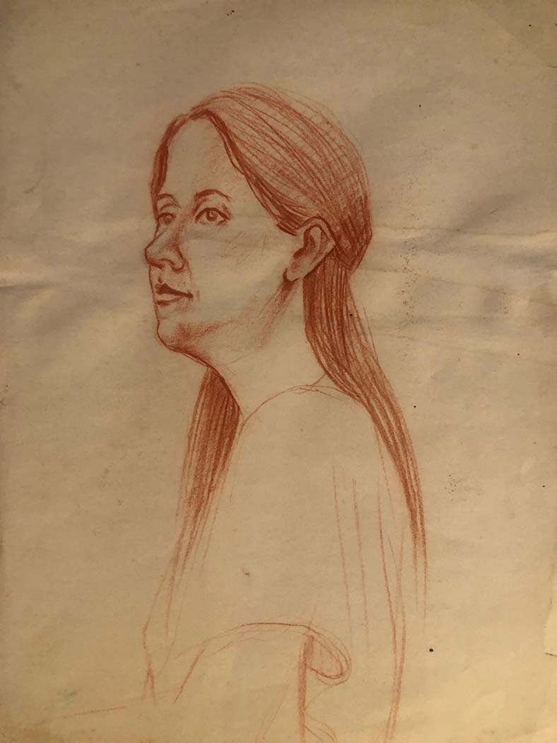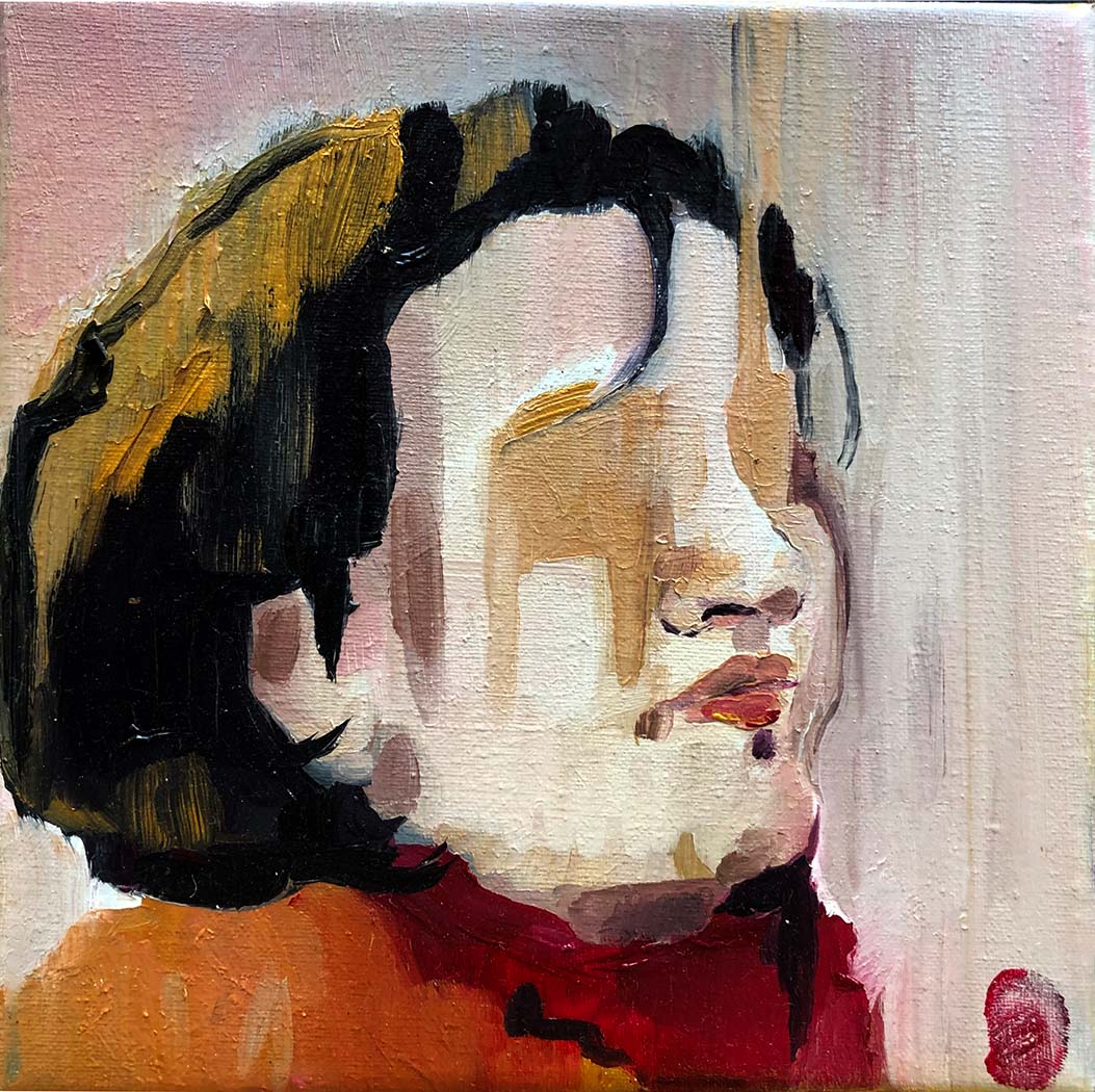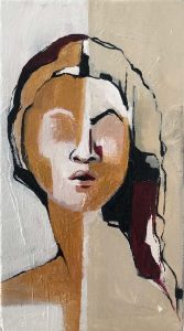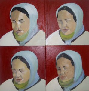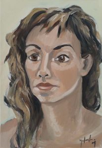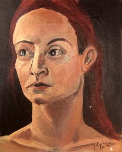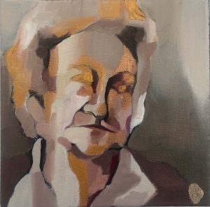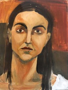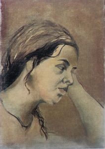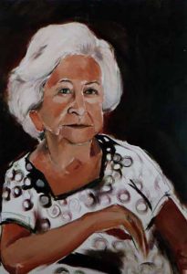 El resto de trabajos, más académicos, tanto a lápiz (tengo más), apuntes del natural, o apuntes directos óleo. Pertenecen muchos a la época universitaria, donde quería y tenía la necesidad de aprender las “Normas de Dibujo/Pintura”. A mi abuela la retraté por lo menos 4 veces, hay un óleo pequeño del natural que un familiar no encuentra entre alguno más. Me inspiraba mucho, ella decía que tenía arrugas, aunque era muy presumida, y enseguida posaba para mí. He desarrollado mi manera de expresar el rostro, profundizando y mirando de aprender a expresar posteriormente no sólo la apariencia exterior. He intentado sintetizar por planos, para luego pasar a una mancha más espontánea, sentida y más real para mí. Se caracterizan por el uso del dorado en los ojos… Como luz interior, de una visión interior y profunda del ser.